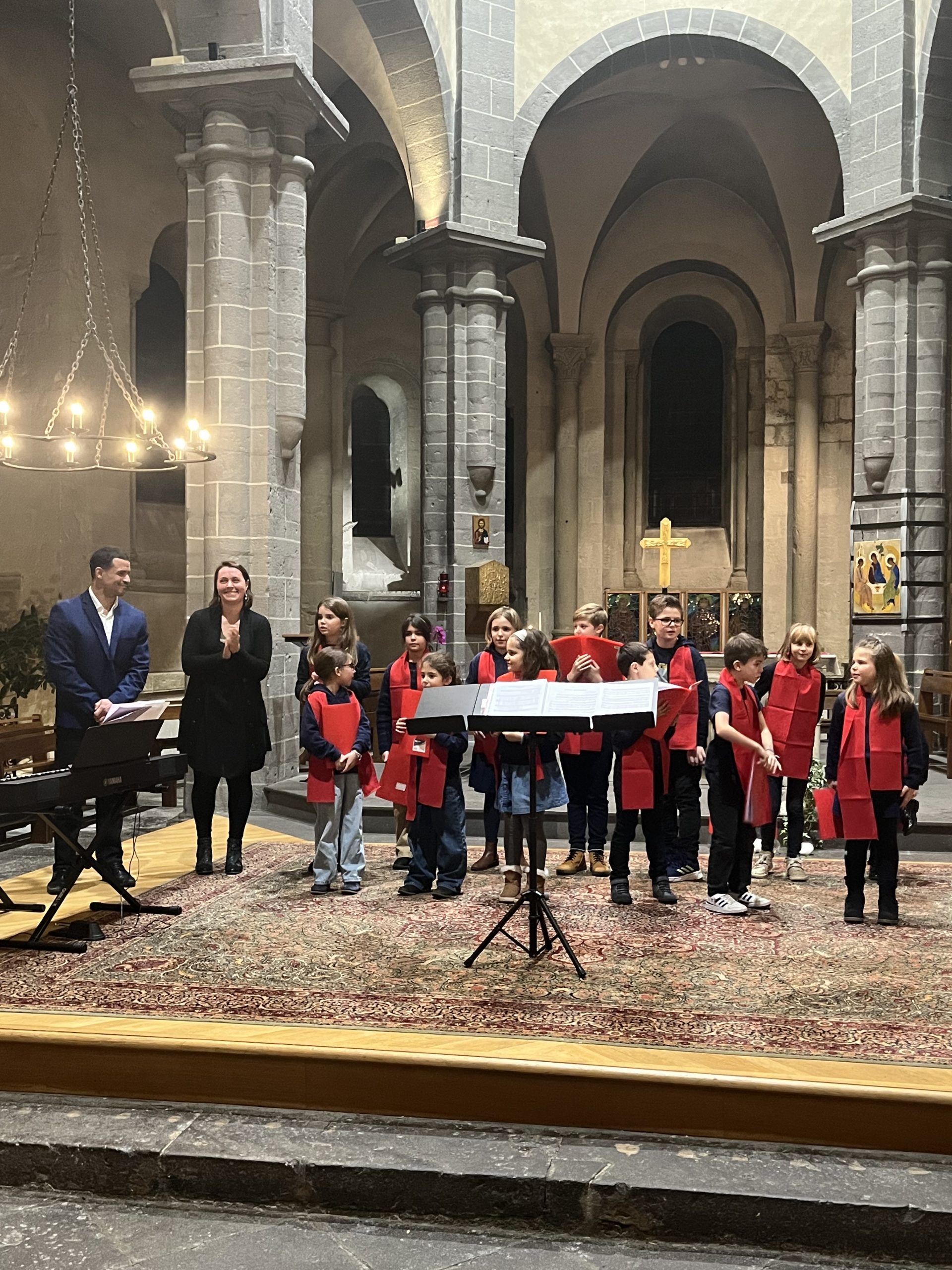 Ce dimanche 14 décembre en fin d’après-midi, l’église de Chamalières a accueilli les élèves de l’école inscrits à l’atelier chorale du vendredi. Sous la direction de Anne-Sophie Songis, accompagnée du pianiste Peter Pinard, ils nous ont offert un concert de qualité. Merci à eux pour ce très bon moment!