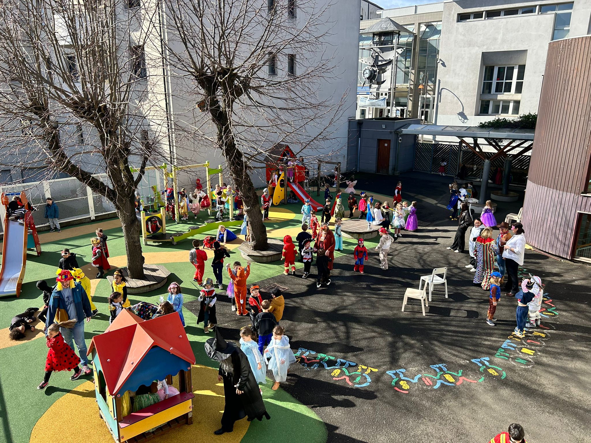 Ce jeudi 12 mars, sous un beau soleil printanier, les élèves de l’école ont fêté la mi-carême. Les cours de récréation se sont transformées en un véritable festival de couleurs, peuplées de chevaliers, princesses, pirates et de nombreux autres personnages.
